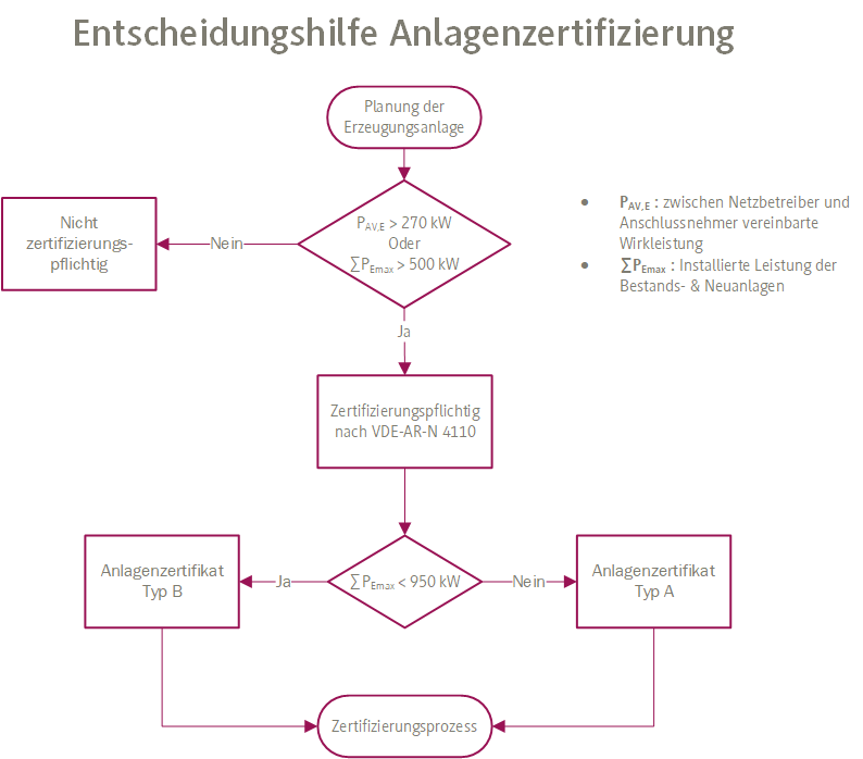 - Koordination und Erstellung von Anlagenzertifikaten gemäß VDE-AR-N 4110 / 4120